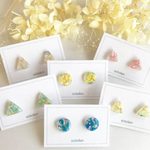 「sobolon」は、海洋汚染の要因であるマイクロプラスチックを回収し、それらを素材としたハンドメイドアクセサリーを製作しているブランドです。
